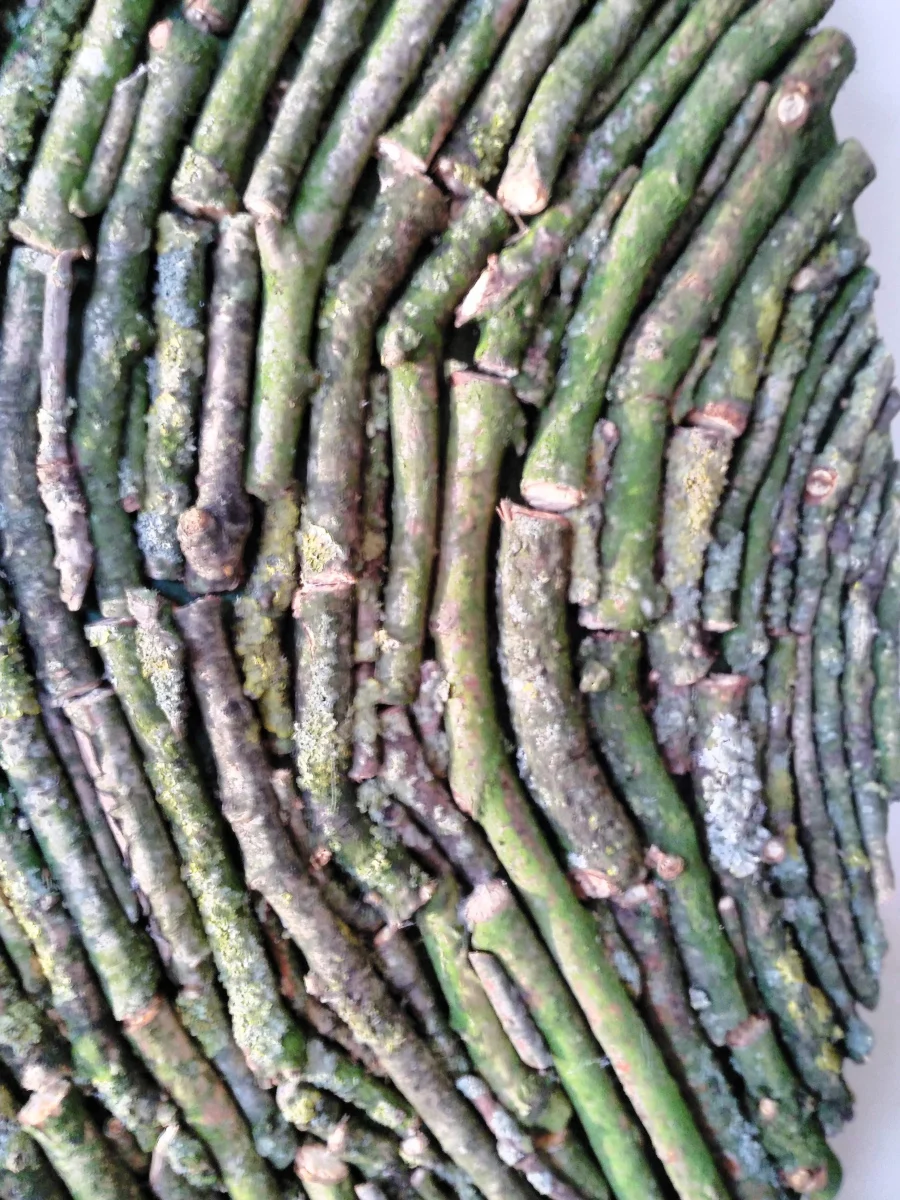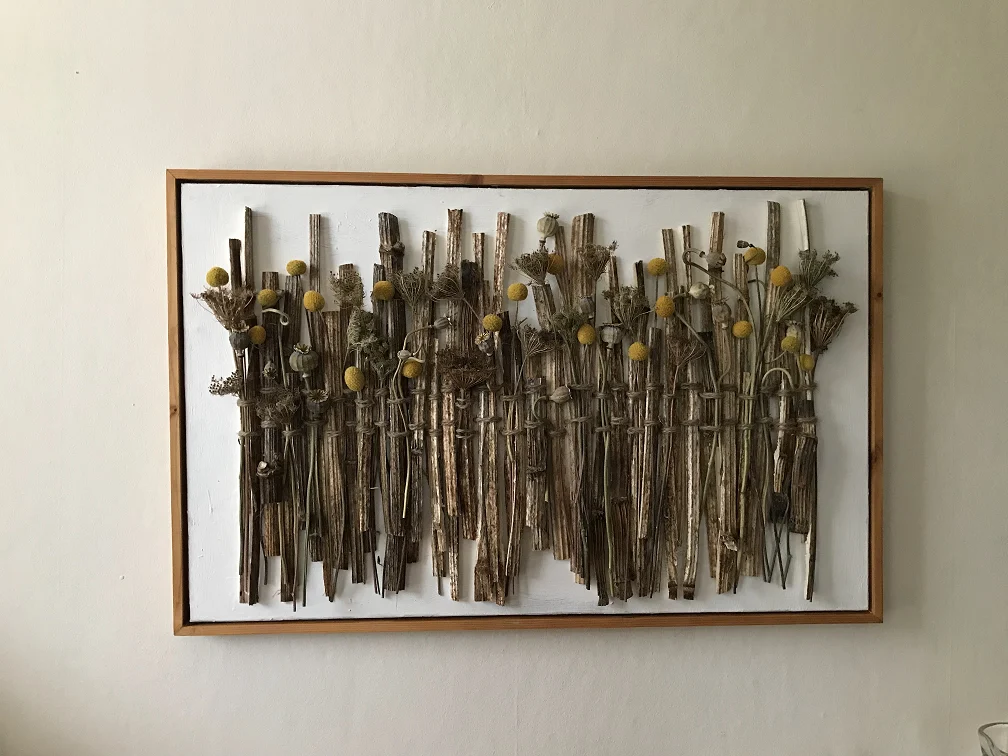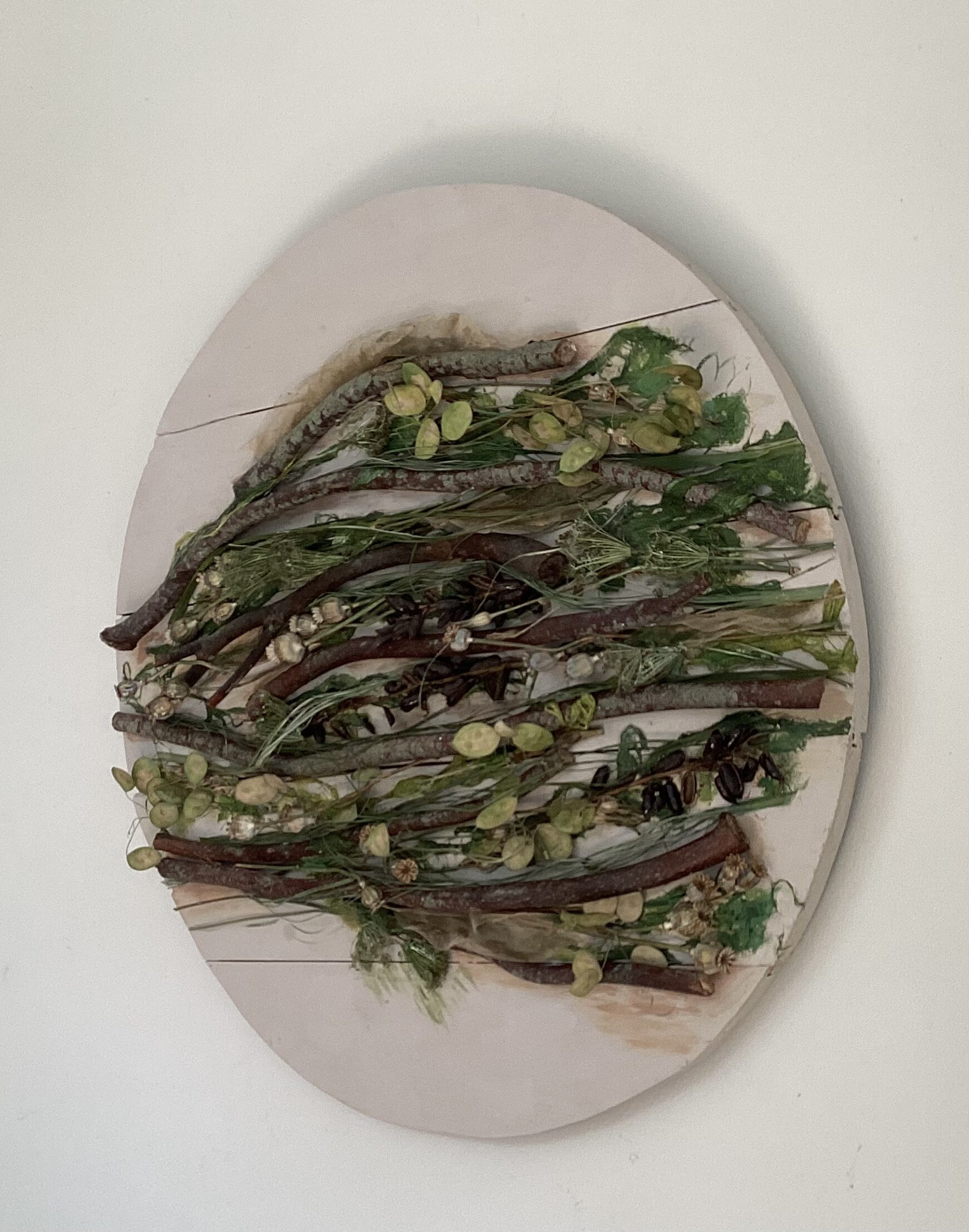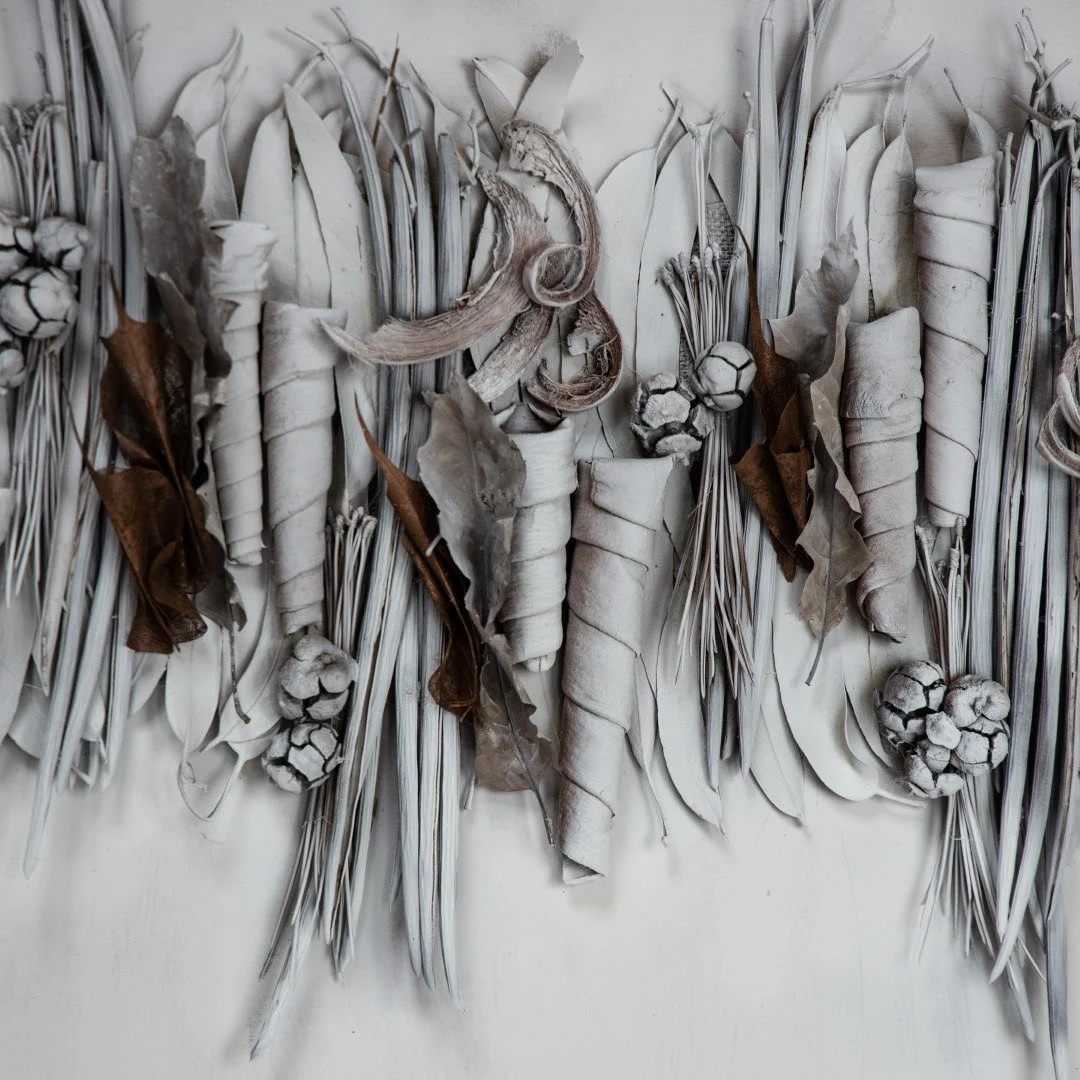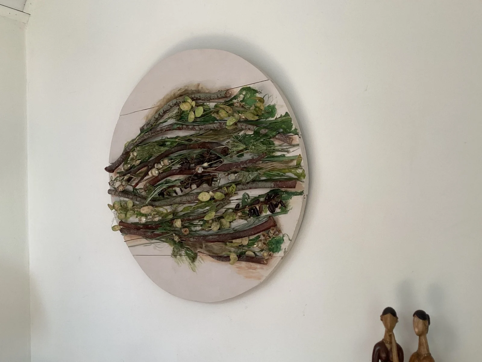 Met natuurlijke materialen zoals blad, schors, zaaddozen en takken maak ik composities.