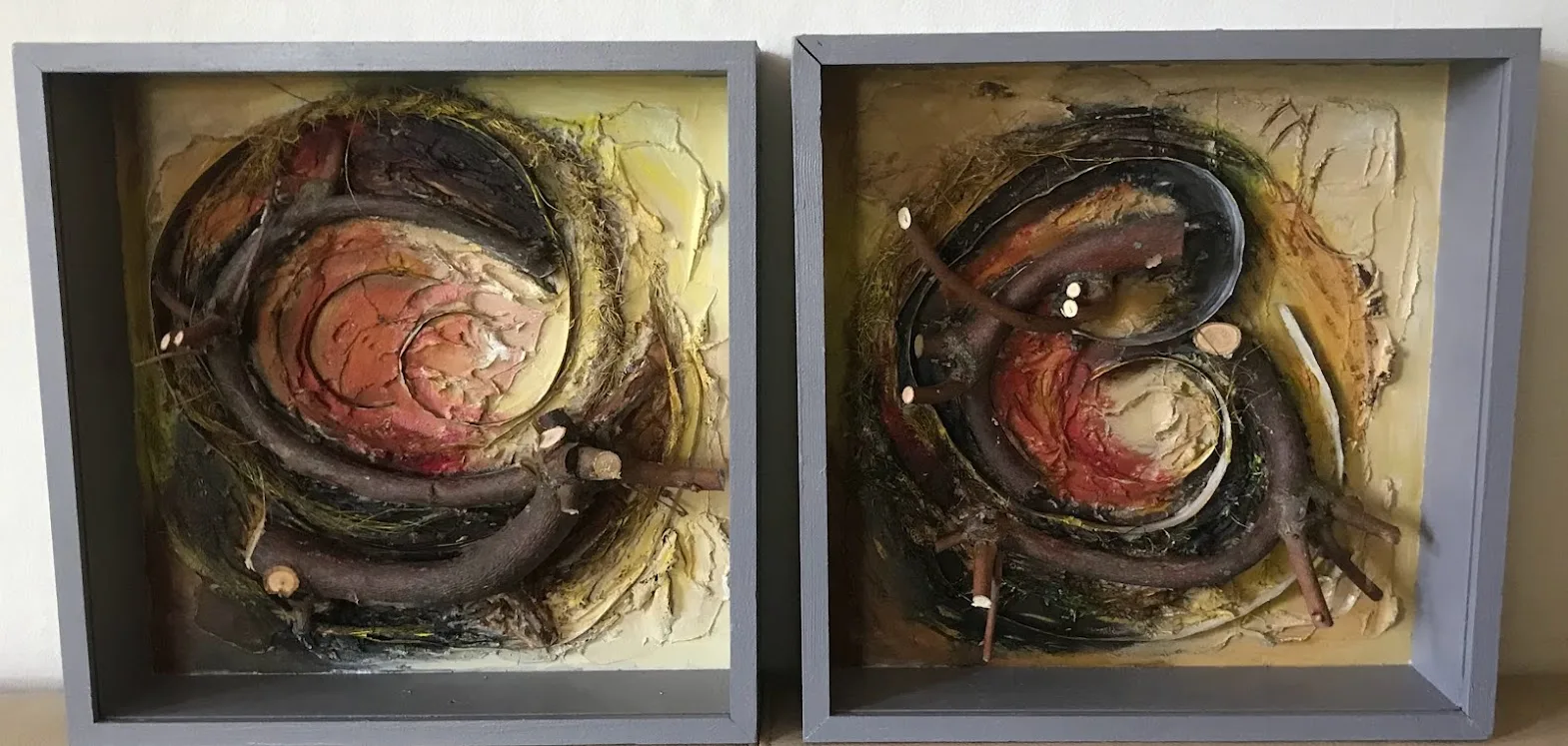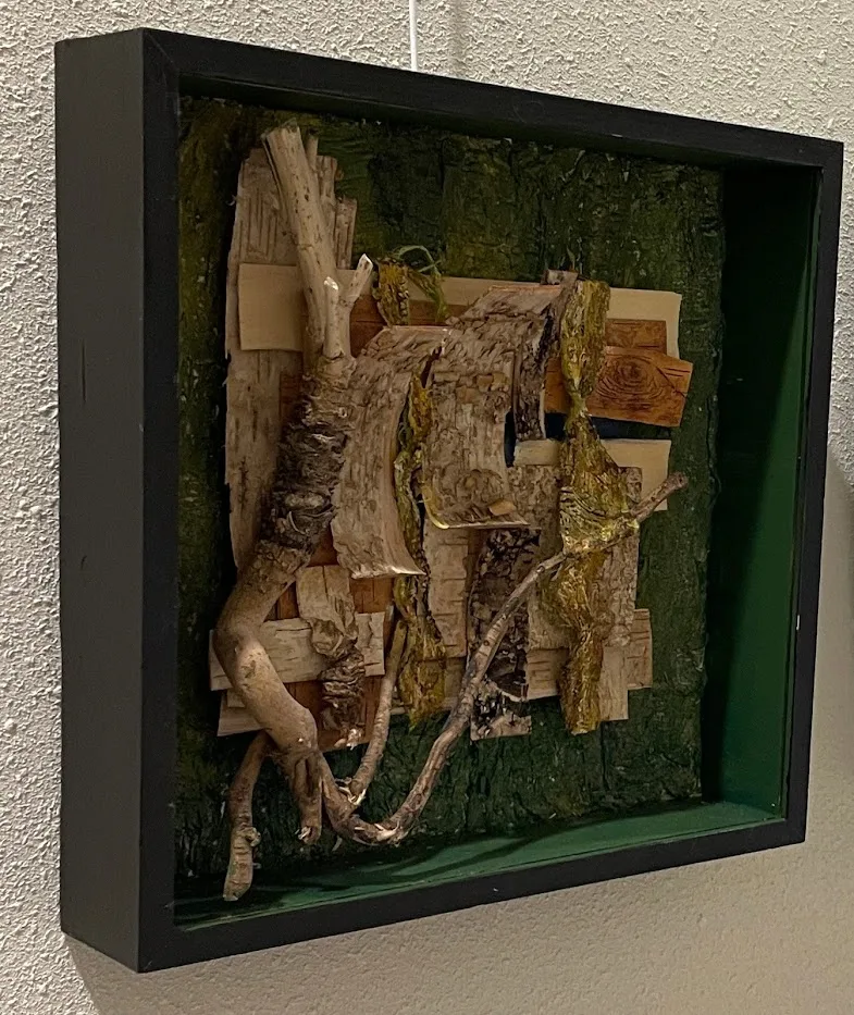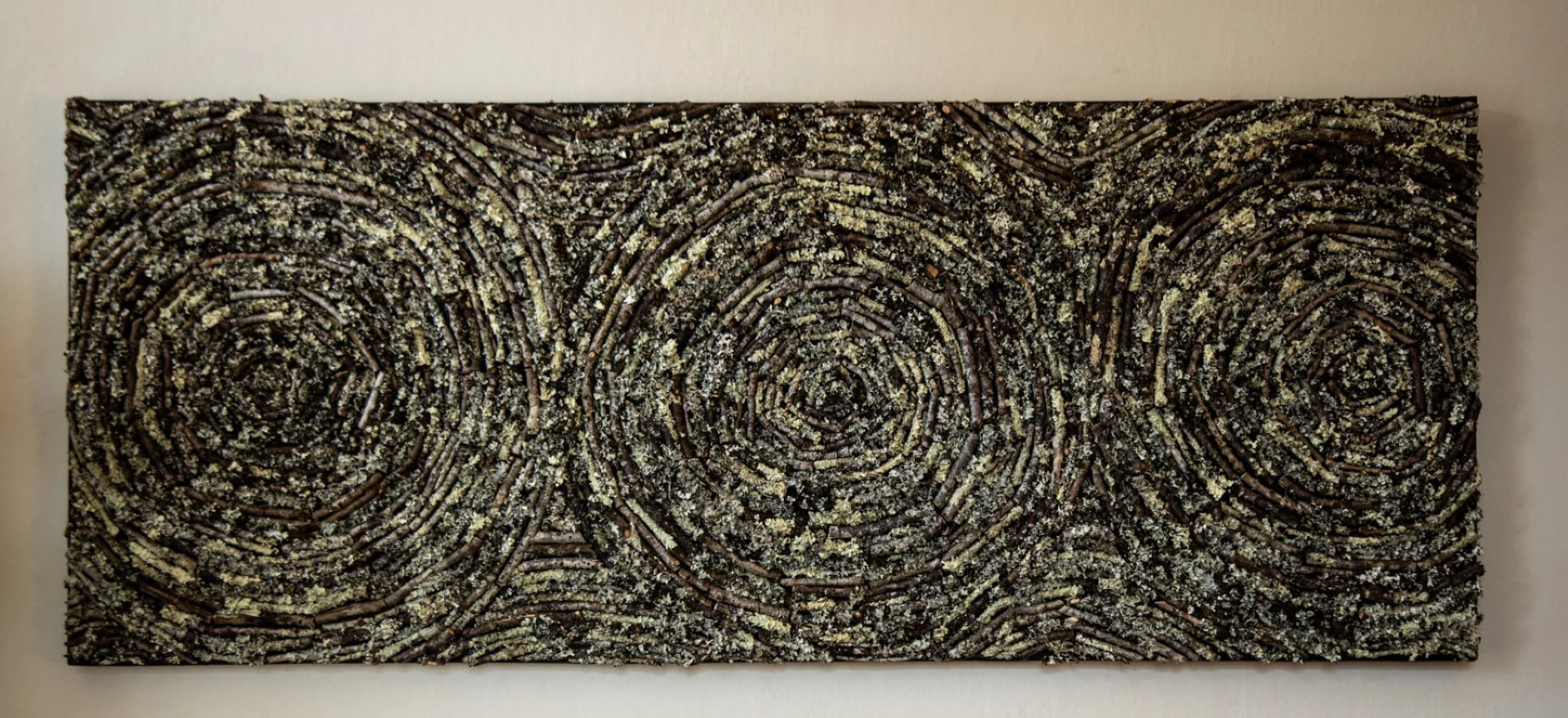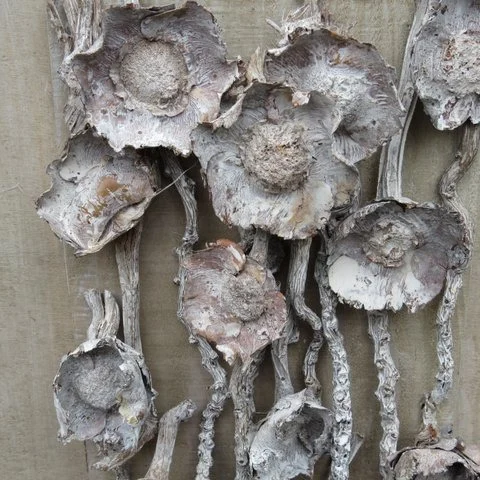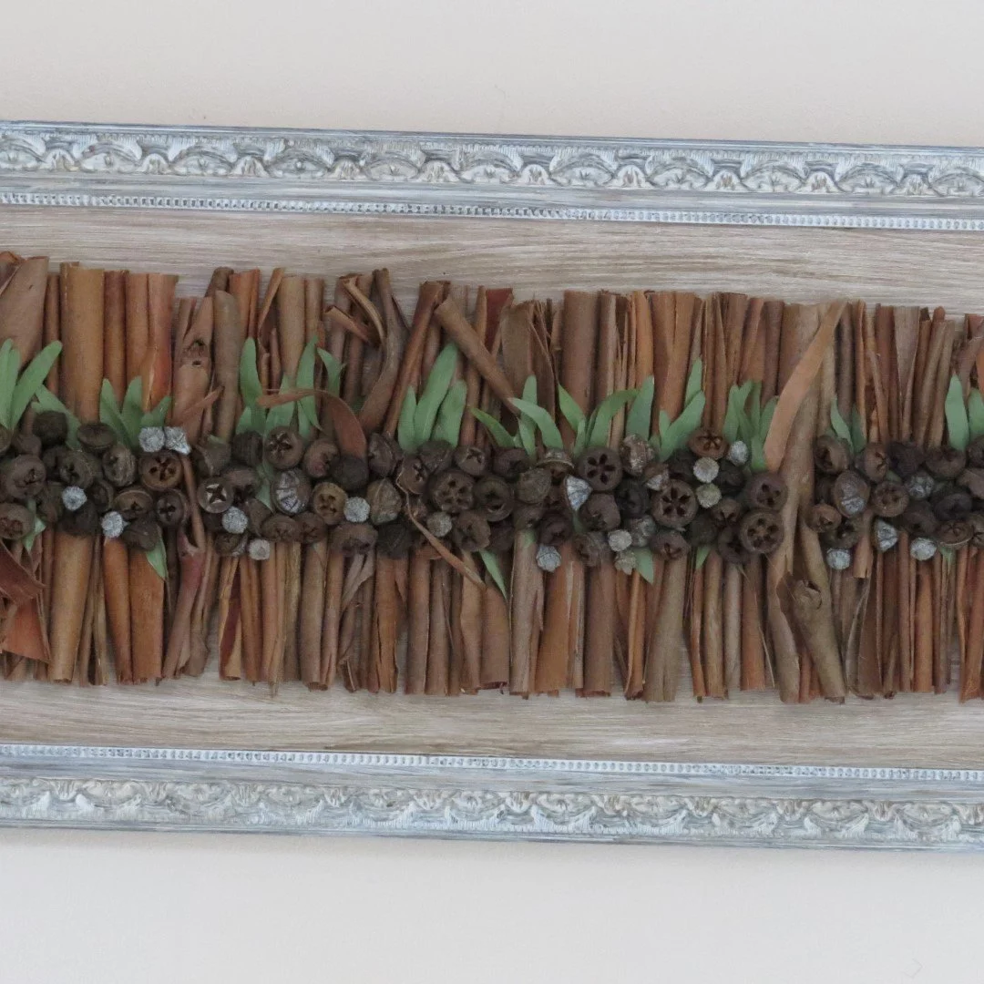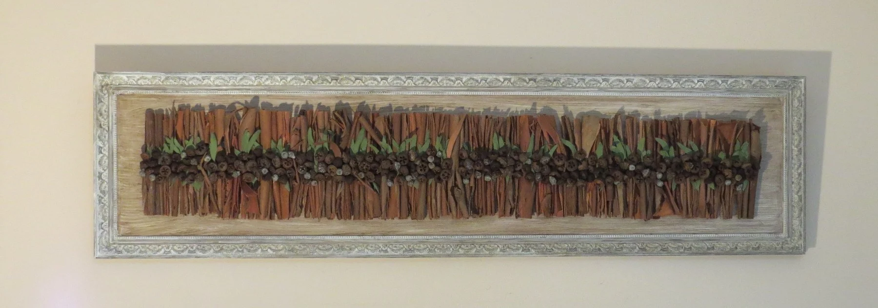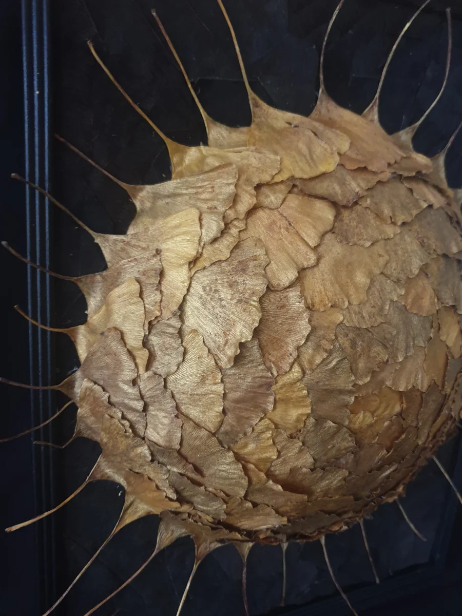 Met natuurlijke materialen zoals blad, schors, zaaddozen en takken maak ik composities.