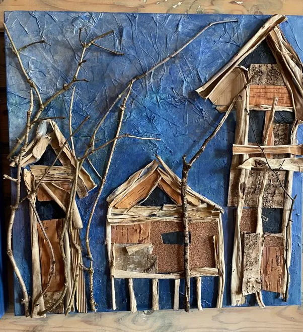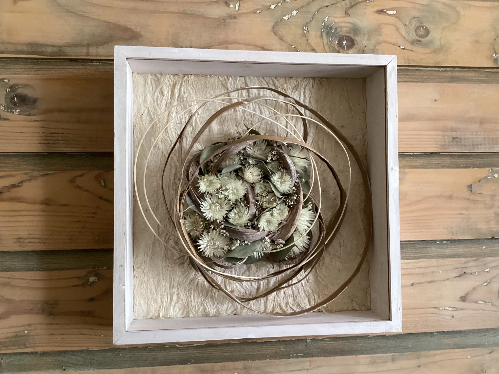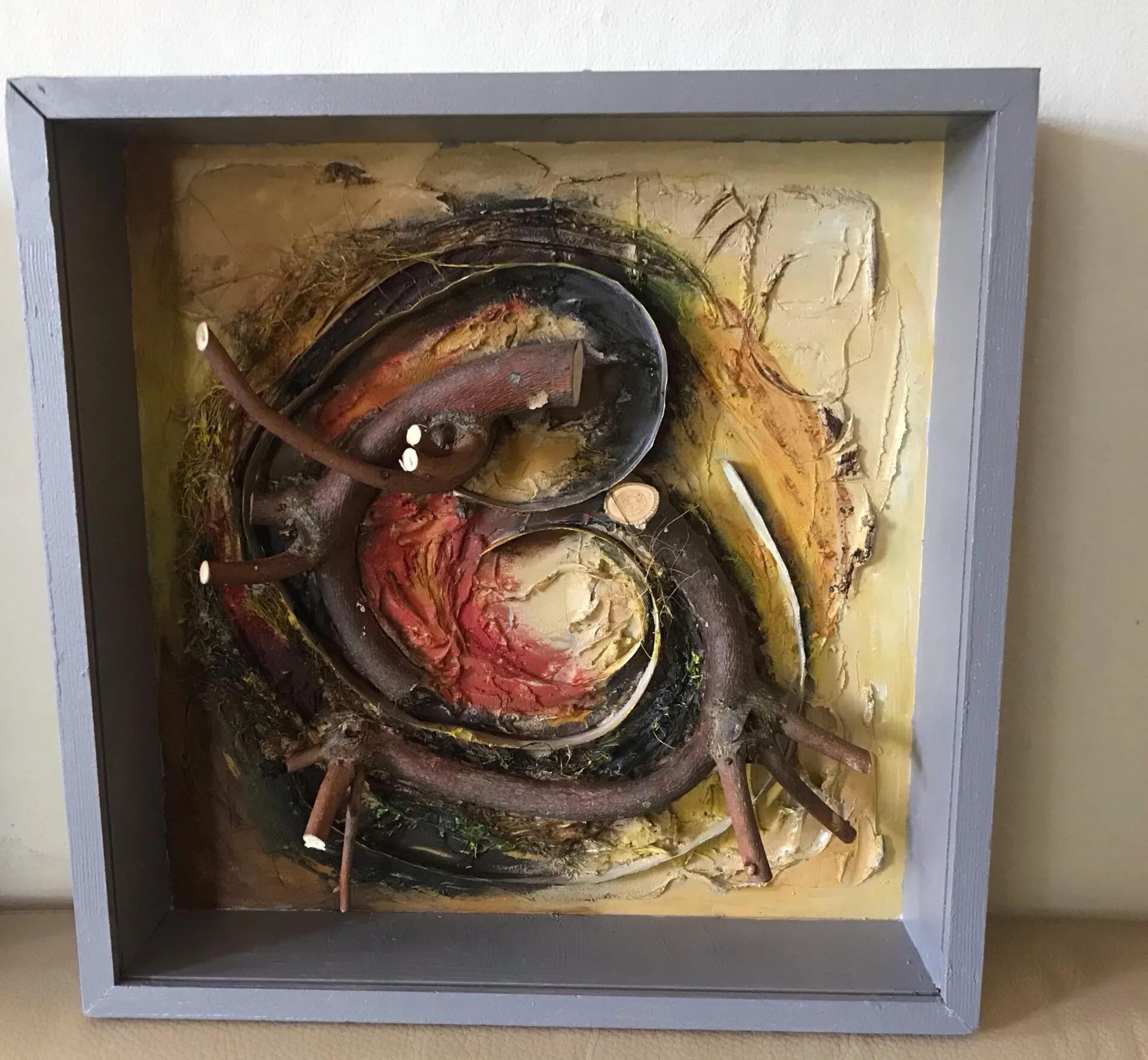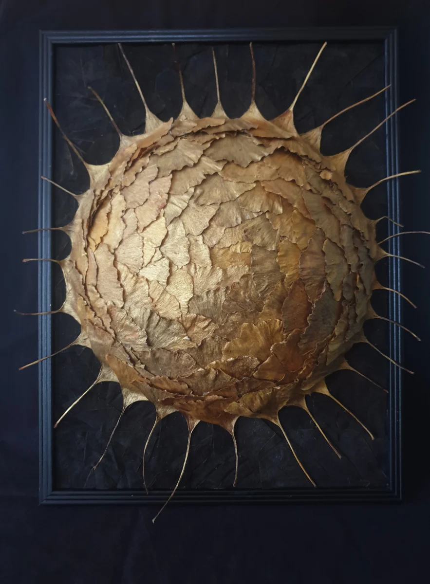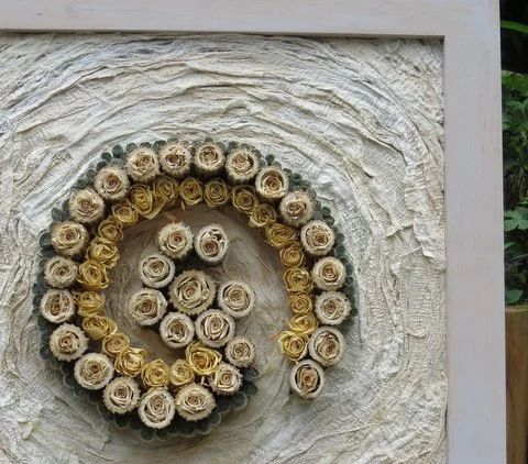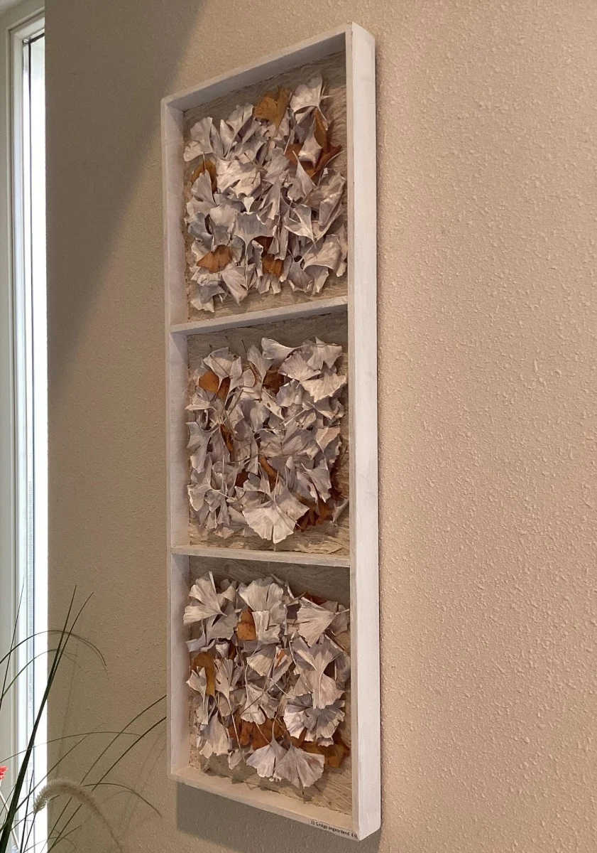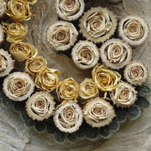 Met natuurlijke materialen zoals blad, schors, zaaddozen en takken maak ik composities.