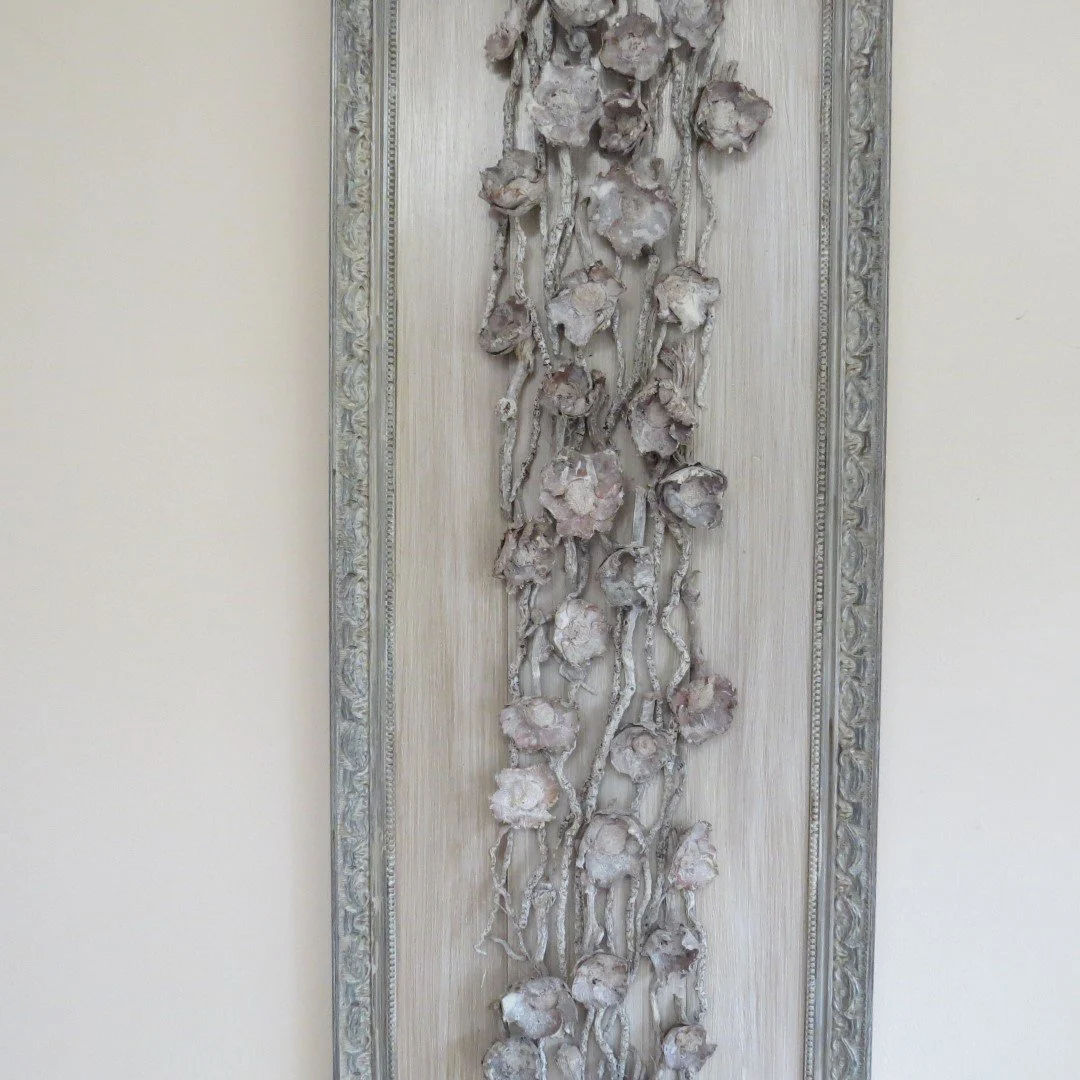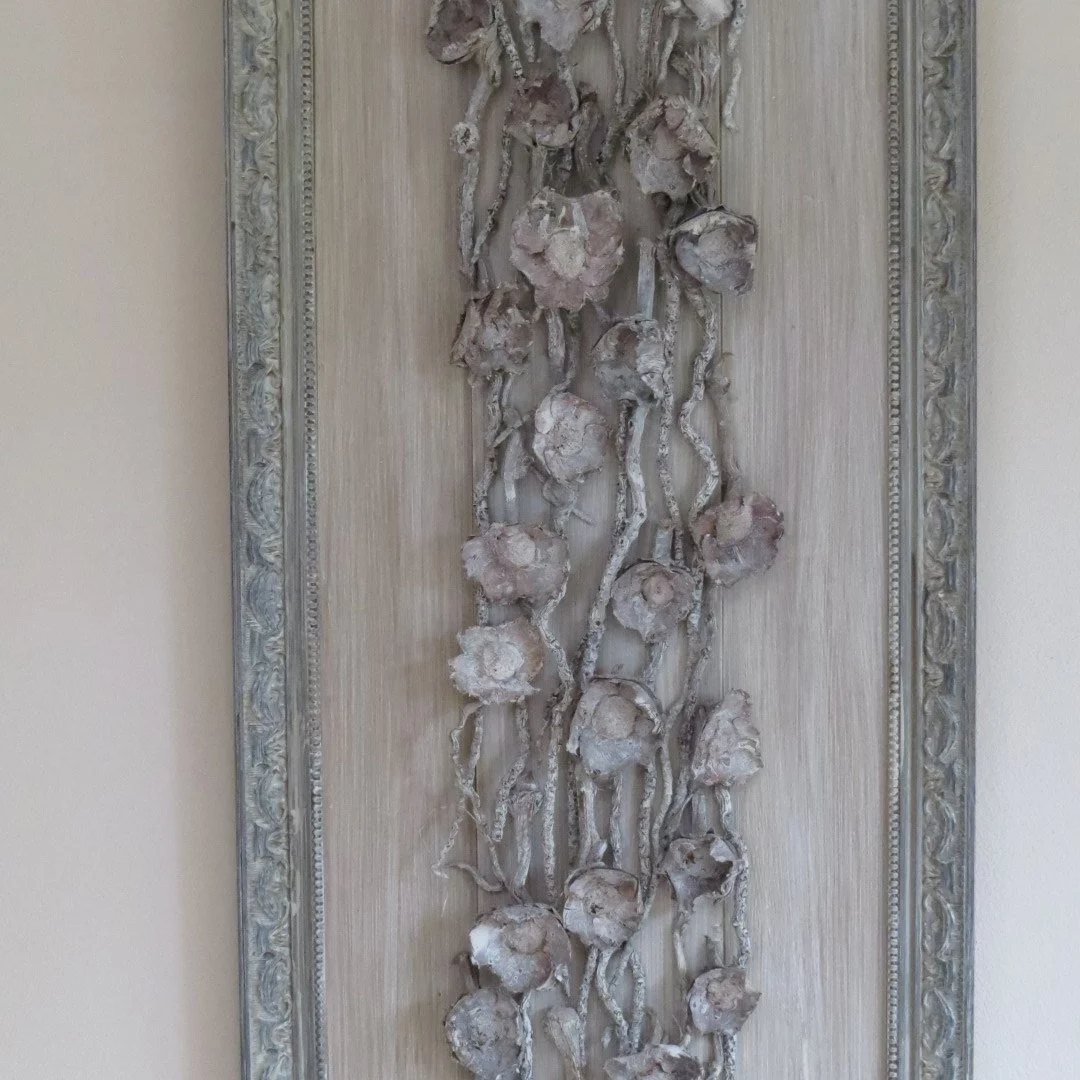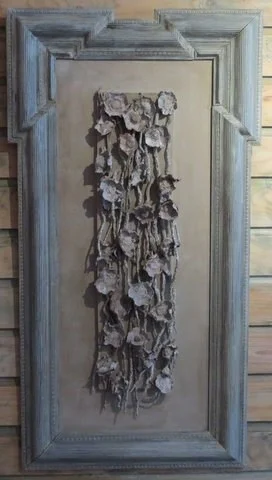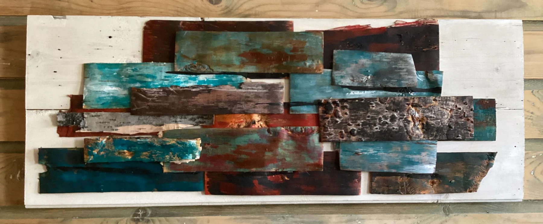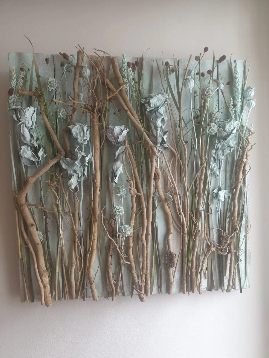 Zie je op deze website iets wat je aanspreekt? Ik kan op maat een vergelijkbaar wandobject voor jou maken. Ik koop zo min mogelijk nieuw materiaal, die ik als ondergrond gebruik. De keuze is; (oud) schilders doek of sloophout. Soms is bepaald blad niet op voorraad.