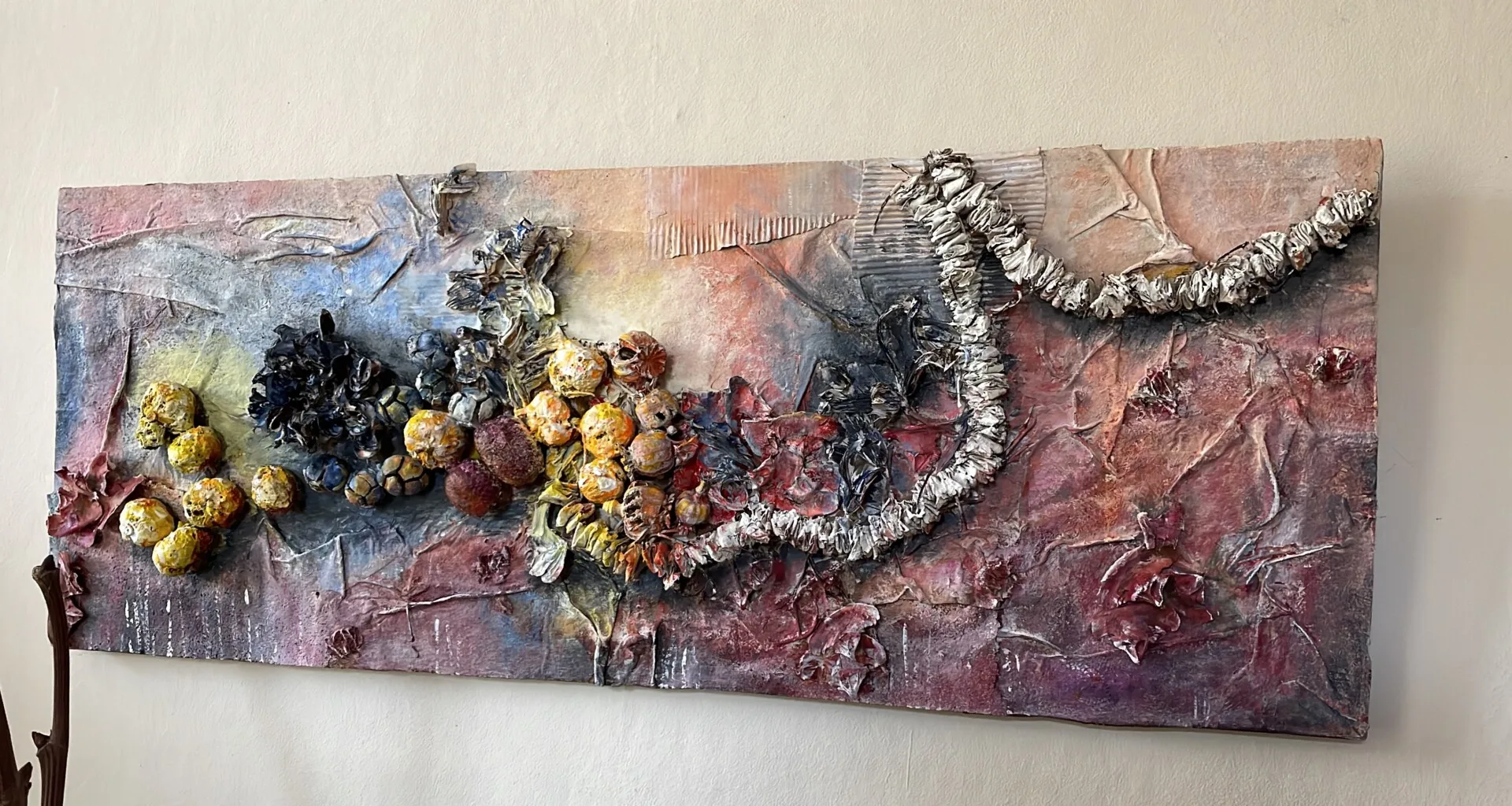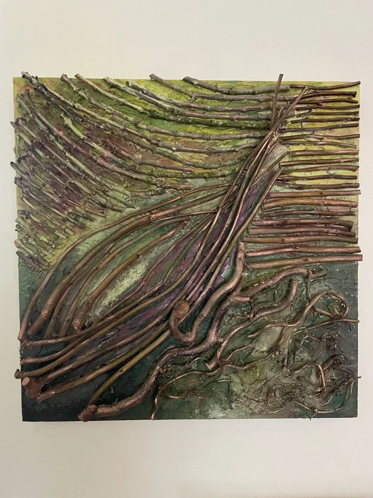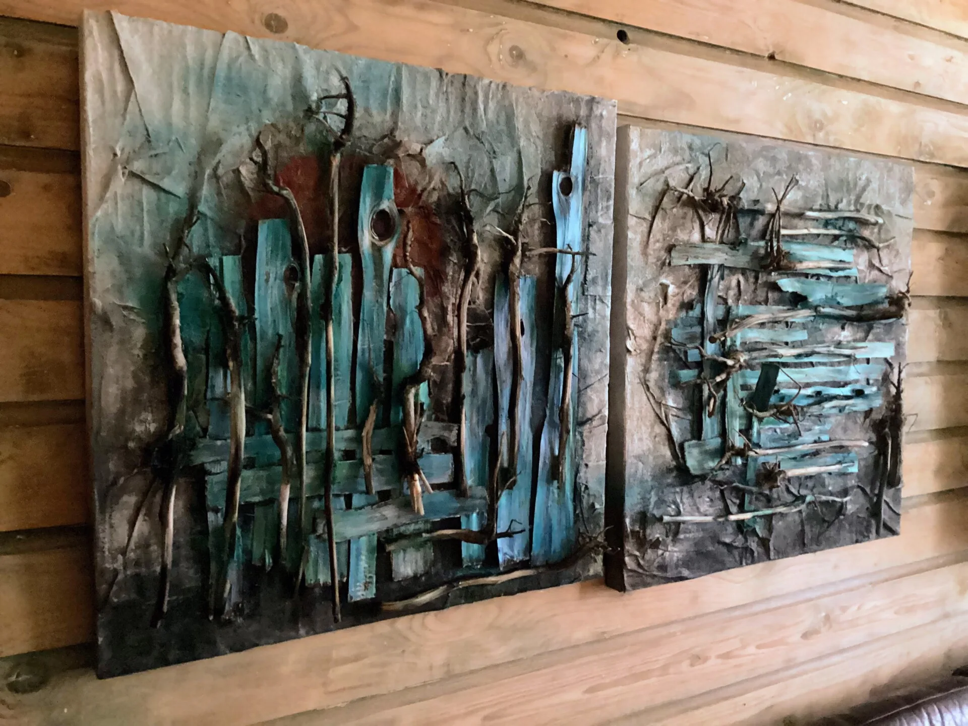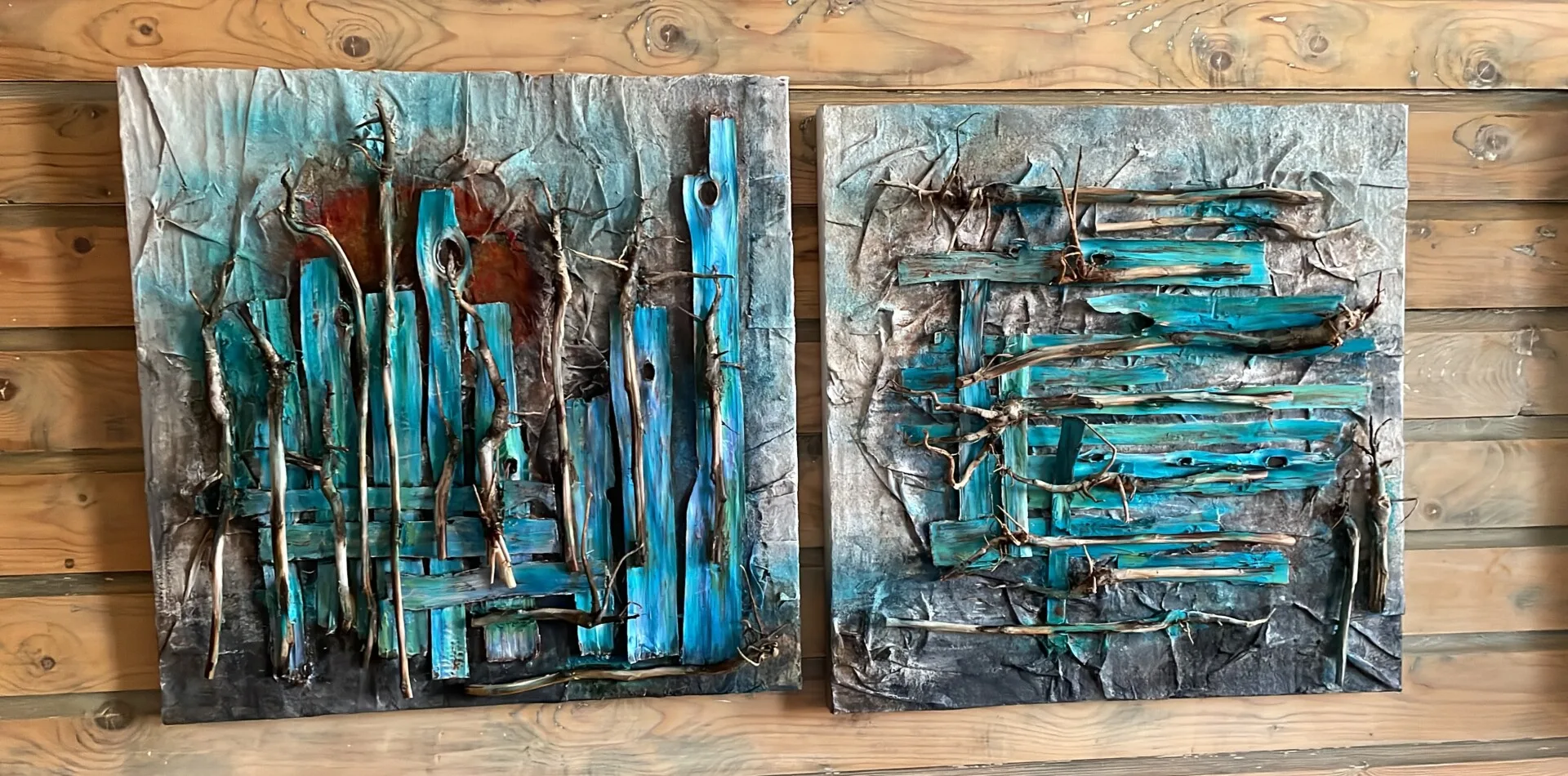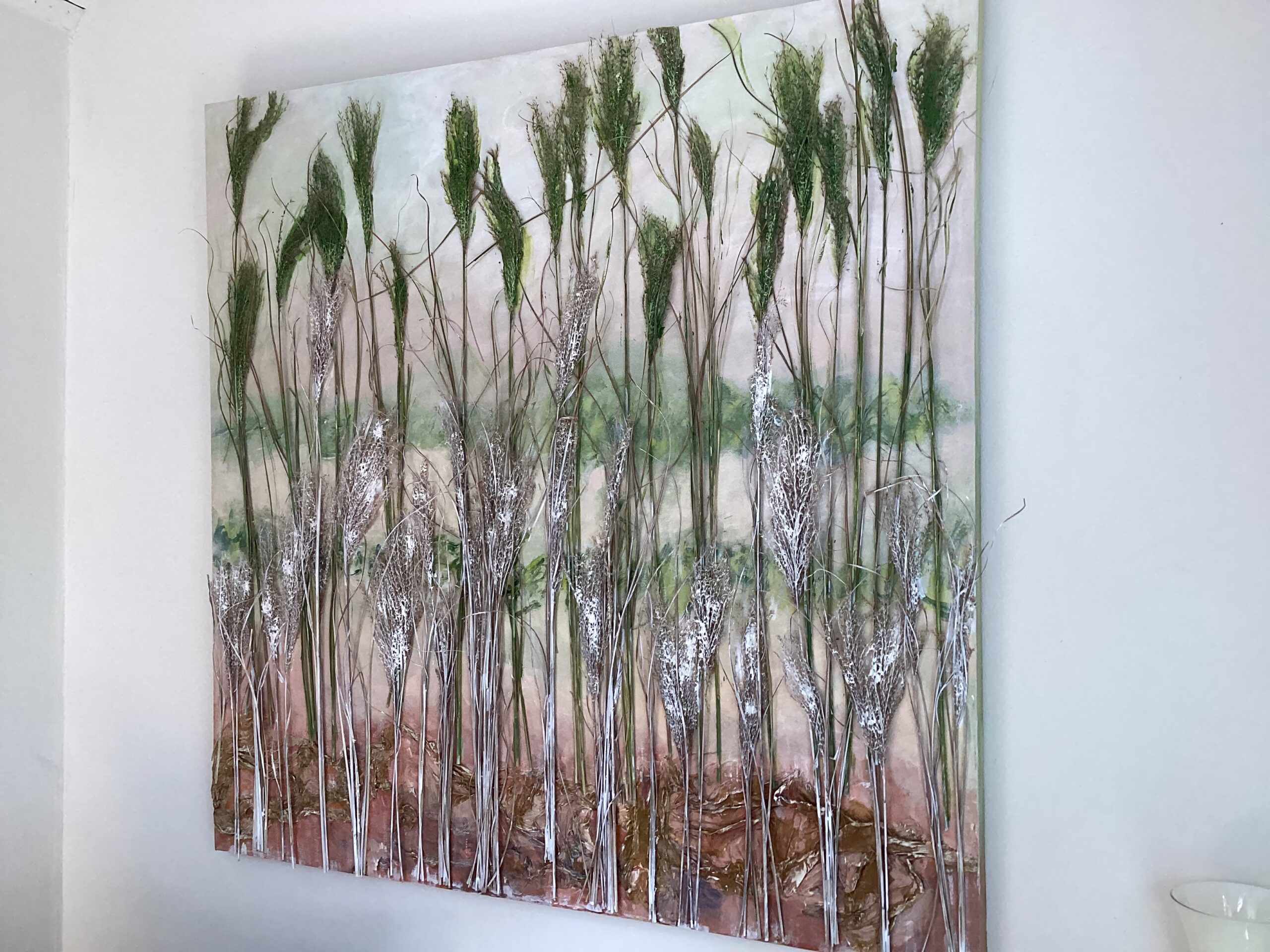 Zie je op deze website iets wat je aanspreekt? Ik kan op maat een vergelijkbaar wandobject voor jou maken. Ik koop zo min mogelijk nieuw materiaal, die ik als ondergrond gebruik. De keuze is; (oud) schilders doek of sloophout. Soms is bepaald blad niet op voorraad.