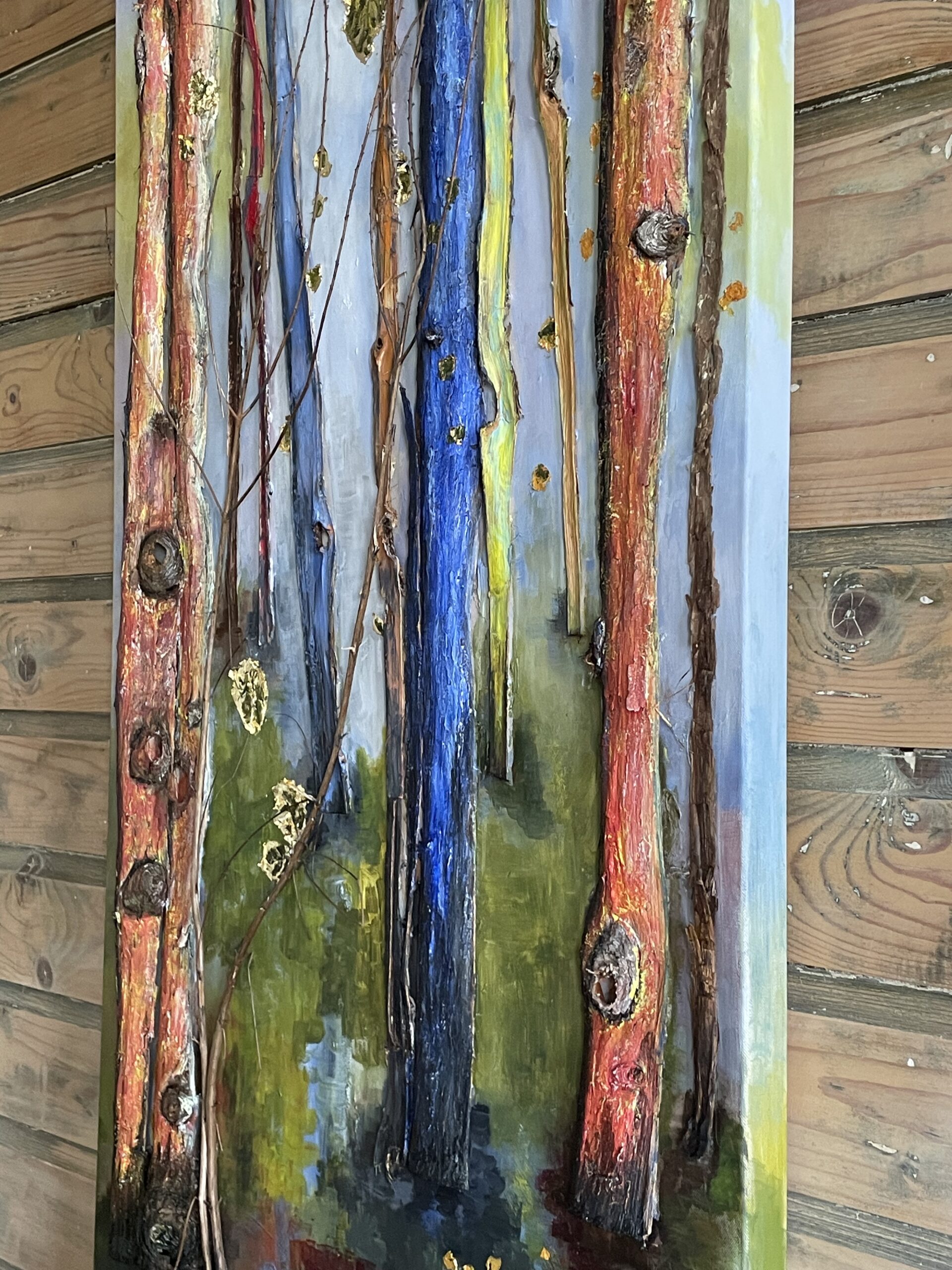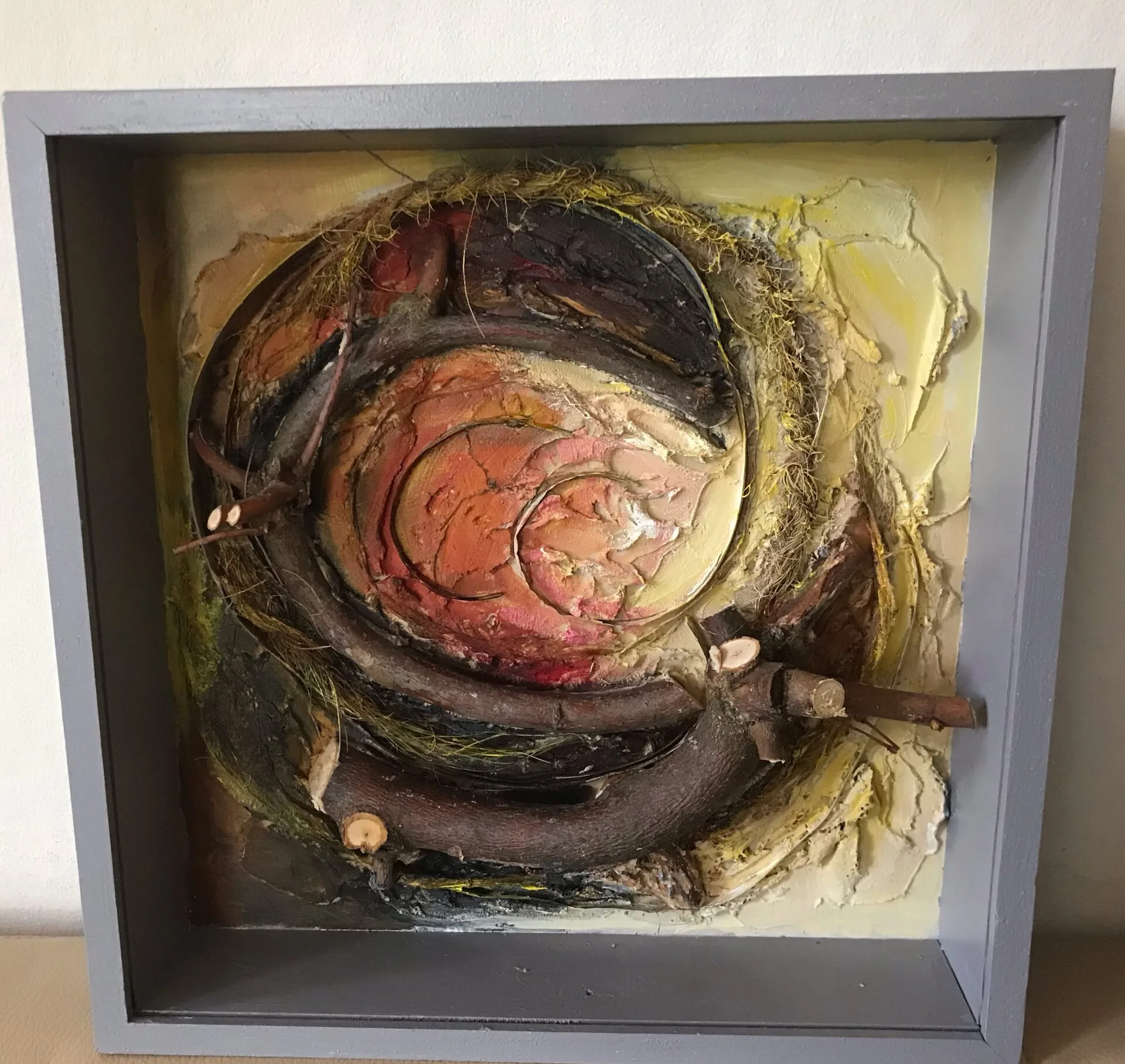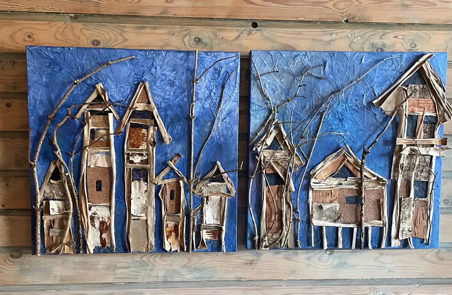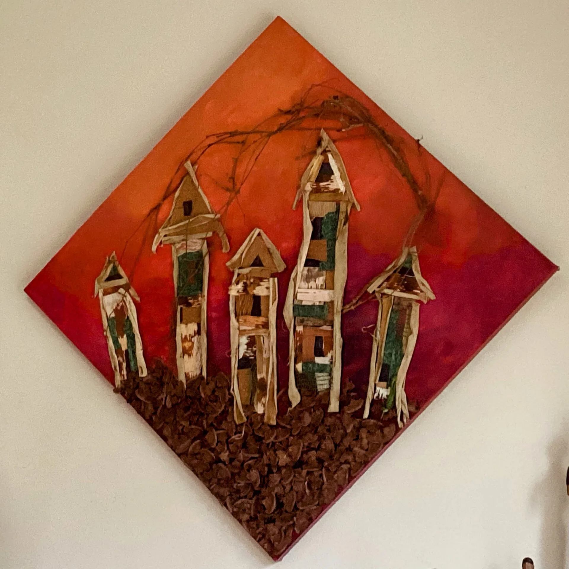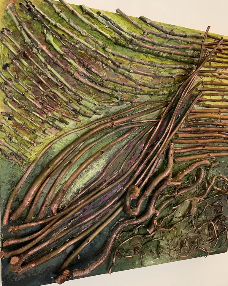 Zie je op deze website iets wat je aanspreekt? Ik kan op maat een vergelijkbaar wandobject voor jou maken. Ik koop zo min mogelijk nieuw materiaal, die ik als ondergrond gebruik. De keuze is; (oud) schilders doek of sloophout. Soms is bepaald blad niet op voorraad.